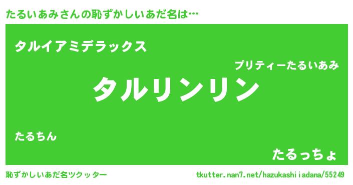 | 意味不明あだ名 | 『とにかく怪しいたるいあみ』 |