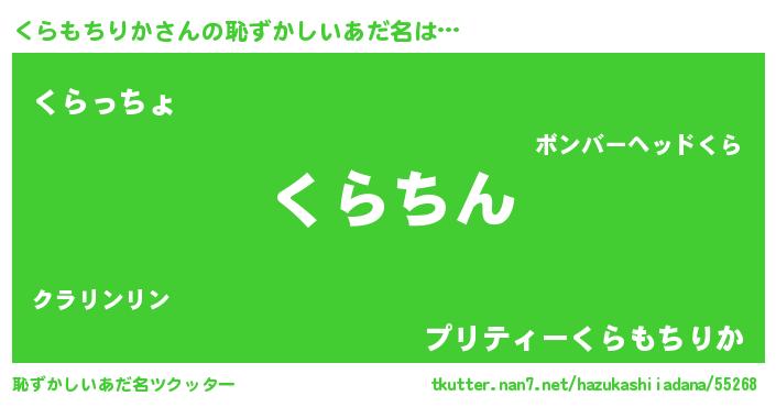 | 胡散臭い通販商品みたいなあだ名 | 『前代未聞の健康食品…その名も「くらもちりか」』 |