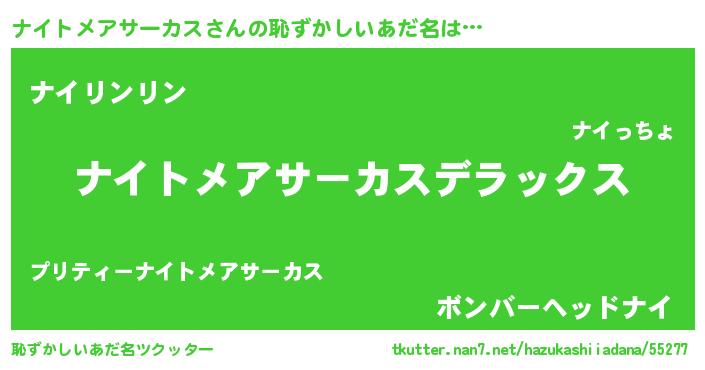 | 胡散臭い通販商品みたいなあだ名 | 『テレビで話題の高麗人参…その名も「ナイトメアサーカス」』 |