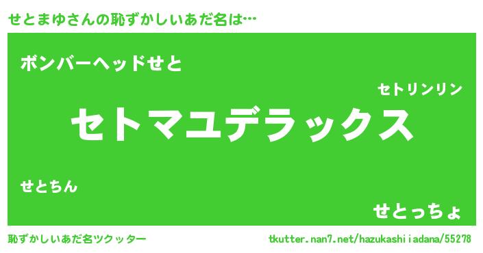| ヒーロー風カッコイイあだ名 | 『サイバー戦士セトマユ』『仮面セトダー』 |