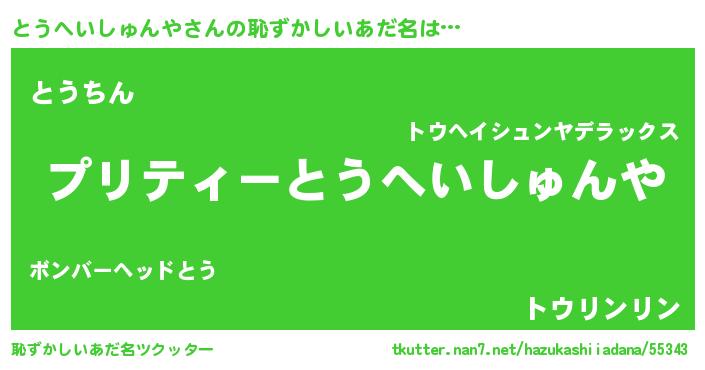 | ヒーロー風カッコイイあだ名 | 『スーパートウヘイシュンヤ』 |