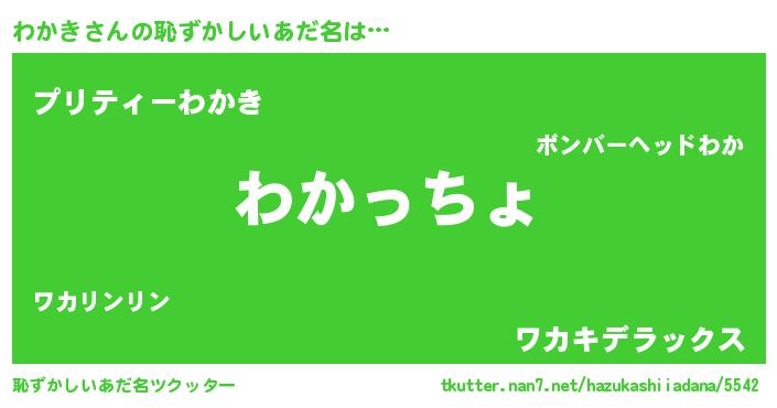 | 意味不明あだ名 | 『わかきフォーエバー』『ペロリンわかき』 |