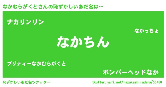 | ヘコむあだ名 | 『なかむらがくと(爆)』『なかっぺ』 |
