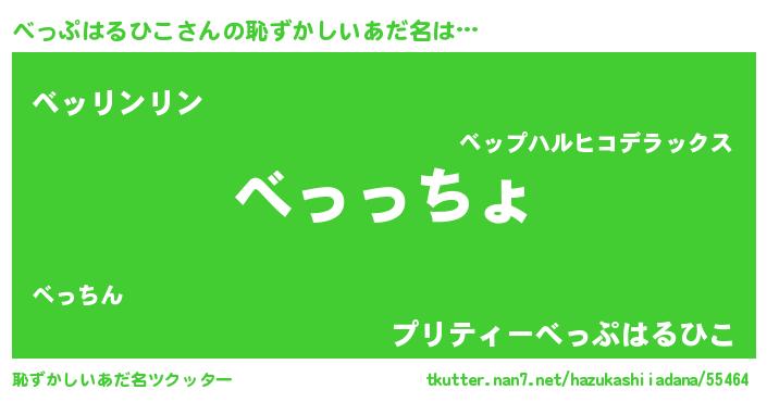 | 欧米人風あだ名 | 『ダレノガレべっぷはるひこ』 |