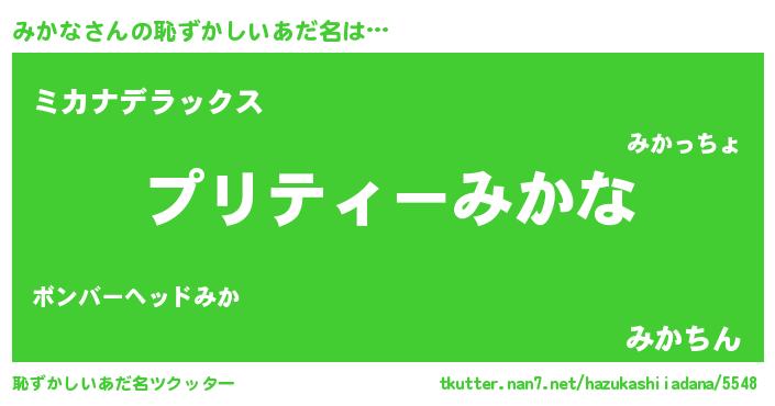 | 胡散臭い通販商品みたいなあだ名 | 『必ず成功するブレスレット…その名も「みかな」』 |