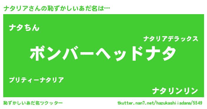 | ヘコむあだ名 | 『ナタリア(笑)』『ナタっぺ』 |