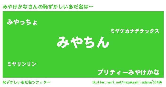| 意味不明あだ名 | 『住所不定無職みやけかな(2歳)』 |