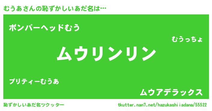 | 意味不明あだ名 | 『住所不定無職むうあ(81歳)』『自称むうあ』 |