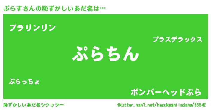 | ヘコむあだ名 | 『ぷらす(爆)』『ぷら太郎』 |