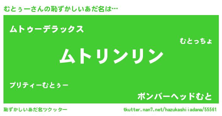| 意味不明あだ名 | 『とにかく怪しいむとぅー』 |