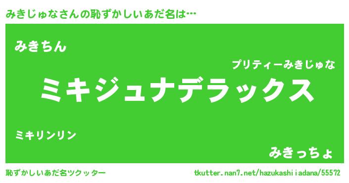 | 意味不明あだ名 | 『自称みきじゅな』『永久保存みきじゅな』 |