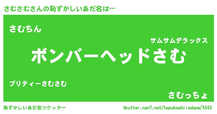 | ヒーロー風カッコイイあだ名 | 『慈愛の使者さむさむ』『仮面サムダー』 |