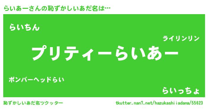 | ヘコむあだ名 | 『らいっふぃ~』『らいあー(笑)』 |