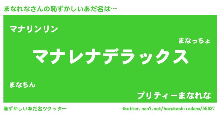 | 男性向けラノベタイトル風あだ名 | 『Re:まなれなから始める異世界生活』 |