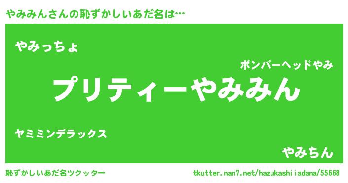 | 男性向けラノベタイトル風あだ名 | 『ヤミミンスレイヤー』『やみみんの憂鬱』 |