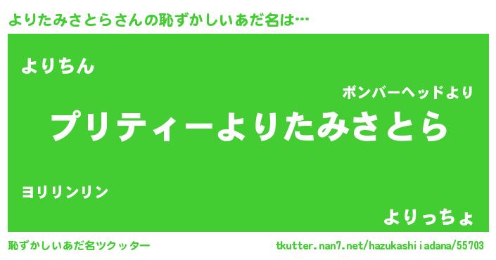 | 胡散臭い通販商品みたいなあだ名 | 『億万長者になれるブレスレット…その名も「よりたみさとら」』 |