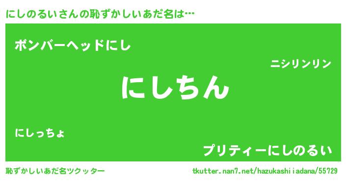 | ヘコむあだ名 | 『にしのるい(震え声)』『にしにゅー』 |