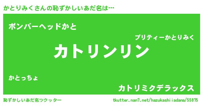| ヒーロー風カッコイイあだ名 | 『銀牙騎士カト』『正義の使者かとりみく』 |