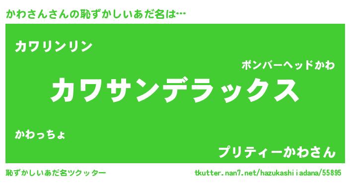 | 男性向けラノベタイトル風あだ名 | 『Re:かわさんから始める異世界生活』 |