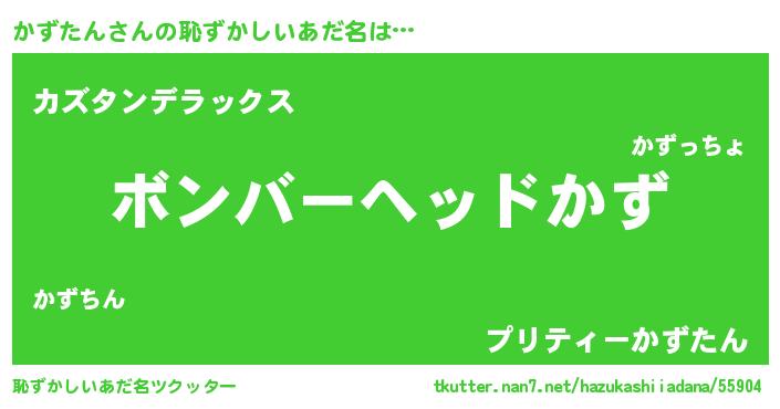 | 男性向けラノベタイトル風あだ名 | 『かずたん~年齢イコール彼女いない歴の魔法使い~』 |