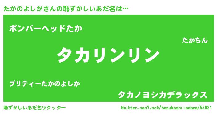 | 男性向けラノベタイトル風あだ名 | 『転生したらたかのよしかだった件』 |