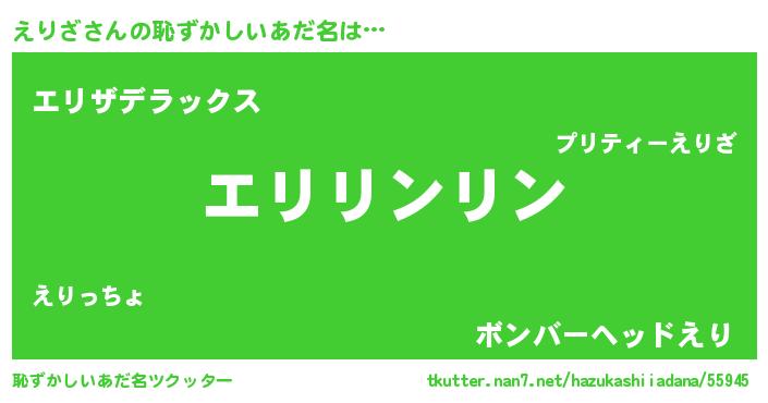 | 女子向けラノベタイトル風あだ名 | 『えりざの玉の輿計画!』『闇のえりざ』 |