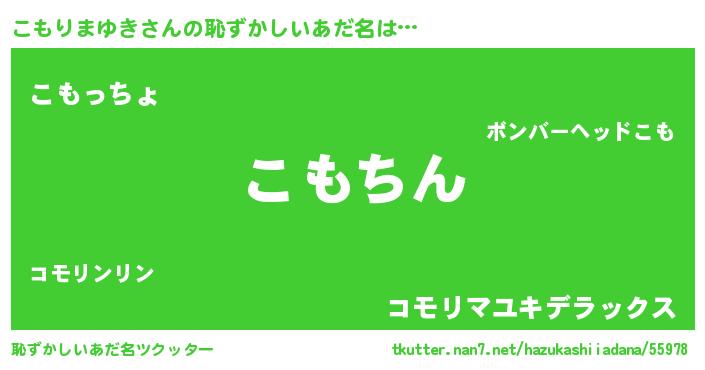 | 意味不明あだ名 | 『永久保存こもりまゆき』 |