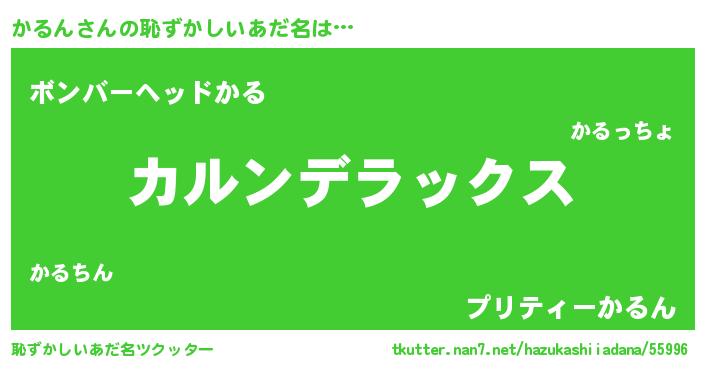 | 男性向けラノベタイトル風あだ名 | 『Re:かるんから始める異世界生活』 |