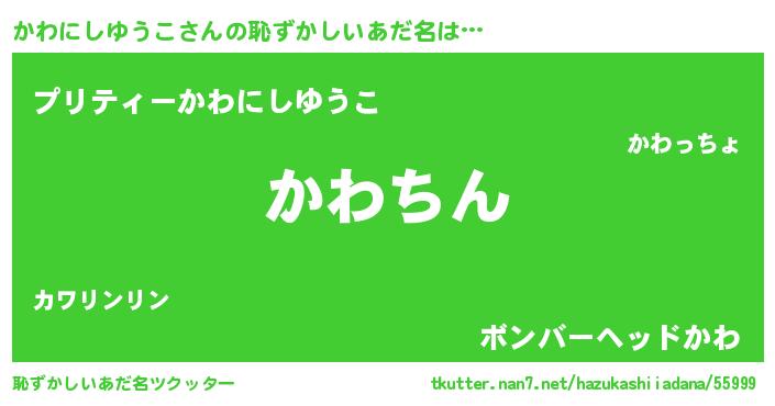 | ヘコむあだ名 | 『かわにしゆうこ(笑)』『かわもー』 |