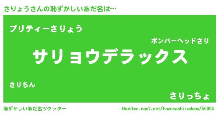 | 男性向けラノベタイトル風あだ名 | 『さりょう~年齢イコール彼女いない歴の魔法使い~』 |