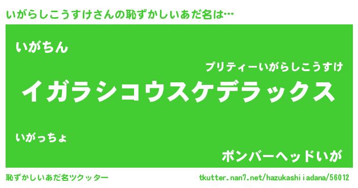 | ヘコむあだ名 | 『いがらしこうすけ(苦笑)』『いがふぇ~』 |
