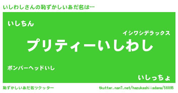 | 意味不明あだ名 | 『ペロリンいしわし』『永久保存いしわし』 |