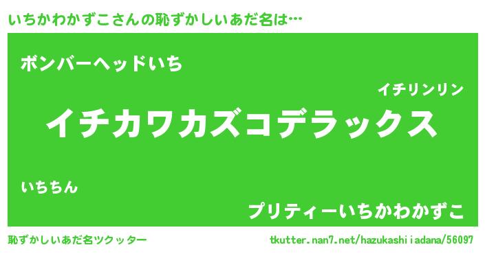 | 男性向けラノベタイトル風あだ名 | 『Re:いちかわかずこから始める異世界生活』 |