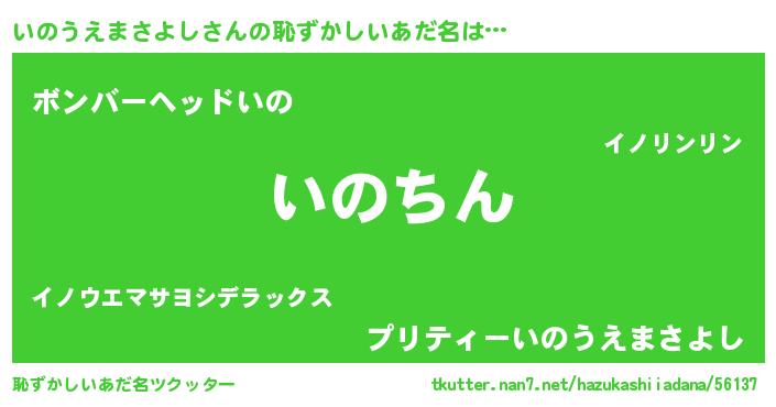 | ヘコむあだ名 | 『いのうえまさよし(震え声)』『いのにゅー』 |