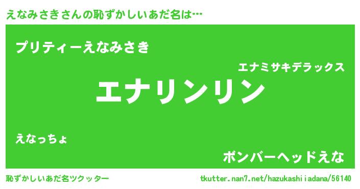 | 男性向けラノベタイトル風あだ名 | 『えなみさきの嫁は女の子じゃないと思った?』 |