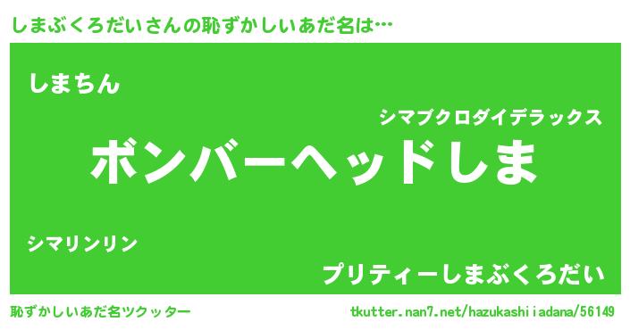 | 男性向けラノベタイトル風あだ名 | 『シマブクロダイスレイヤー』 |