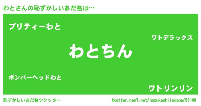 | ヘコむあだ名 | 『わと(笑)』『わとにゅー』 |