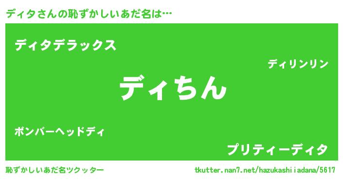 | 男性向けラノベタイトル風あだ名 | 『転生したらディタだった件』 |