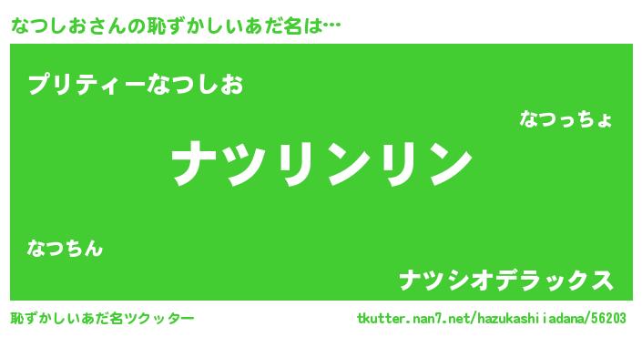 | 意味不明あだ名 | 『とにかく怪しいなつしお』 |