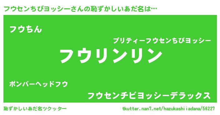 | ヘコむあだ名 | 『フウぷりん』『フウセンちびヨッシー(爆)』 |