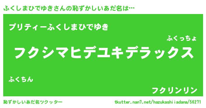 | 男性向けラノベタイトル風あだ名 | 『Re:ふくしまひでゆきから始める異世界生活』 |