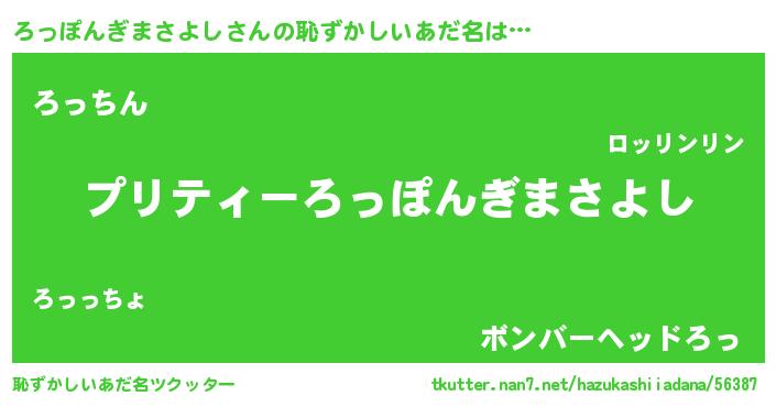 | ヘコむあだ名 | 『ろっにー』『ろっぽんぎまさよし(爆)』 |