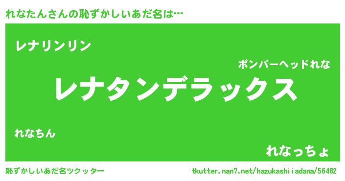 | 男性向けラノベタイトル風あだ名 | 『この素晴らしい世界にれなたんを!』 |