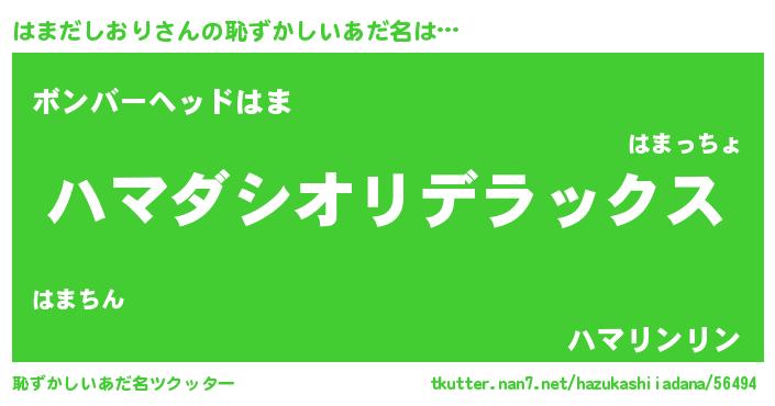 | 男性向けラノベタイトル風あだ名 | 『Re:はまだしおりから始める異世界生活』 |