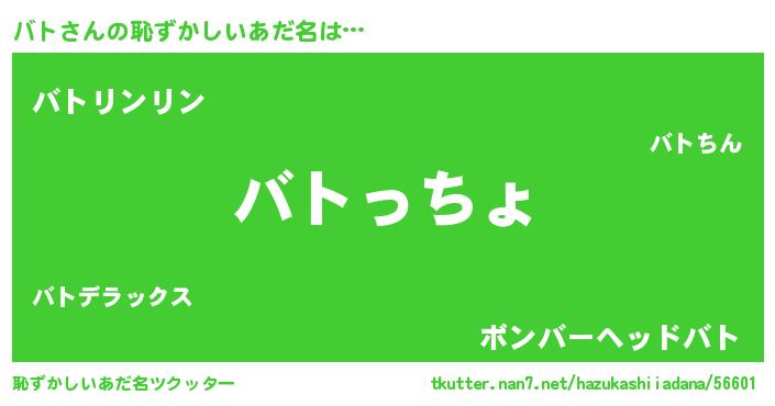 | 意味不明あだ名 | 『バトフォーエバー』『もやし科バト属』 |
