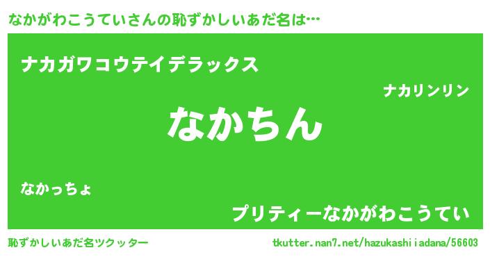 | ヘコむあだ名 | 『なかがわこうてい(笑)』『なかふぇ~』 |