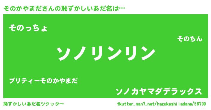 | 男性向けラノベタイトル風あだ名 | 『そのかやまだの嫁は女の子じゃないと思った?』 |