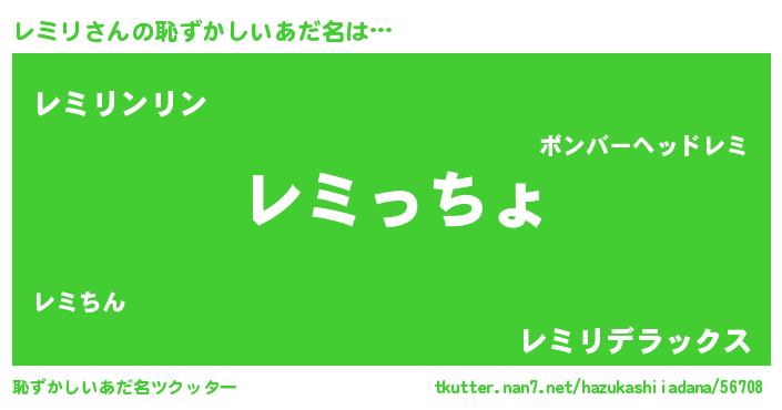 | ヘコむあだ名 | 『豆乳』『レミっ子』『レミリ(笑)』 |