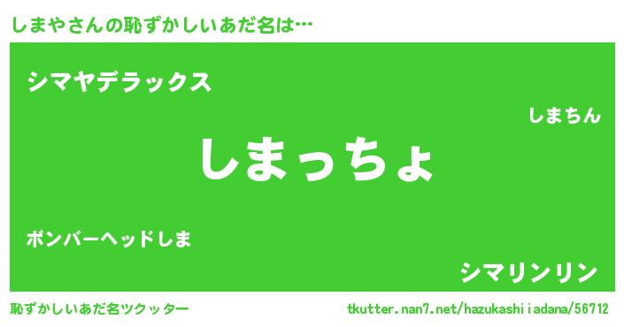 | 意味不明あだ名 | 『しまやフォーエバー』『自称しまや』 |