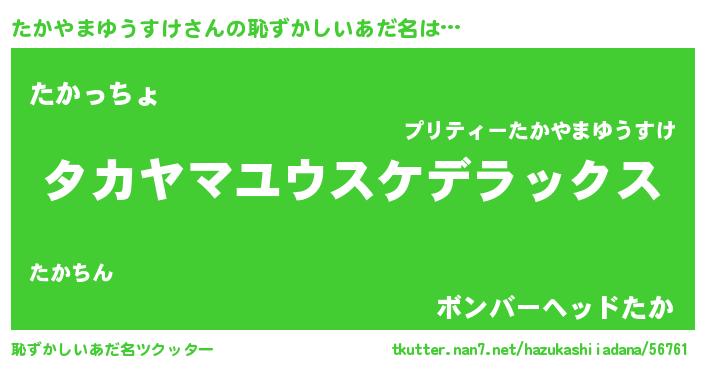 | 女子向けラノベタイトル風あだ名 | 『たかやまゆうすけの玉の輿計画!』 |